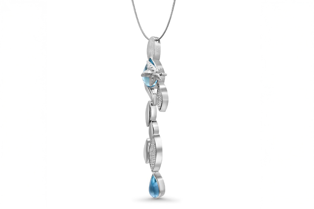 “Spirit of the Ocean” is a piece of jewelry that symbolizes the diversity of the sea. The calm, the movement, and the endless blue.