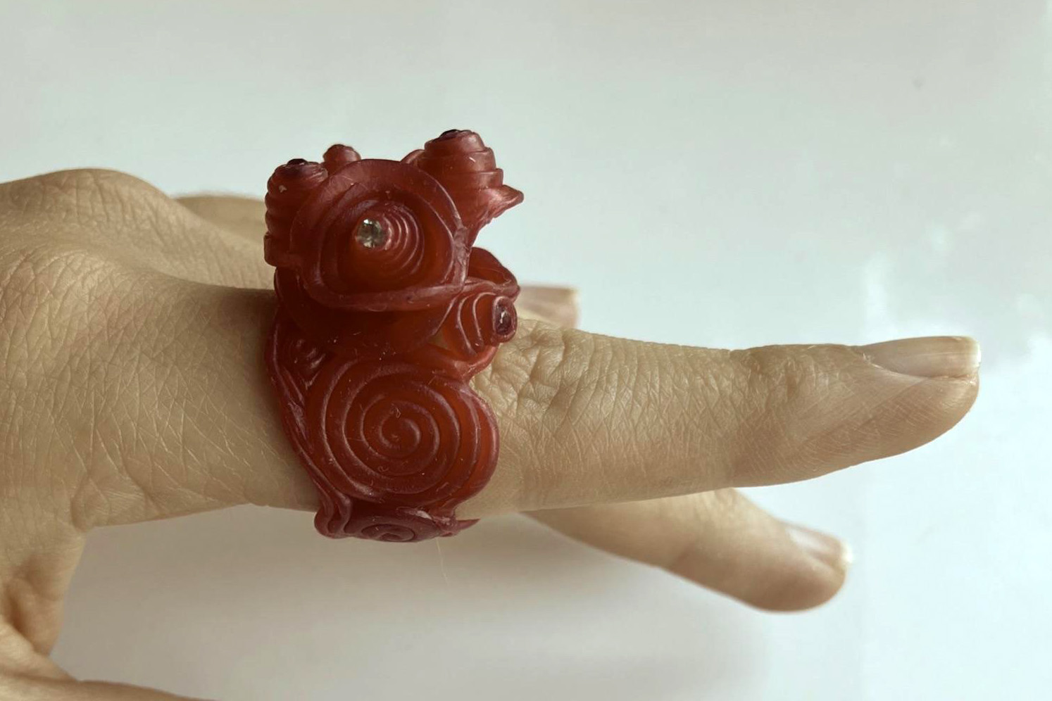 The technique I focused on was coil building, which I have used often in my work with ceramics. As a material I chose to work with modelling wax to make my model, a material which like clay, is malleable, this allowed me to apply the same basic process which I use when coil building in ceramics to coil build my ring. By doing so, the process of making the piece had the same meditative qualities as coil building a pot, slowly and carefully, letting the coils guide the form. In doing so, I hoped to create a piece which would also allow the wearer to experience the same sense of soothing calm brought by the aforementioned meditative nature of coil building.