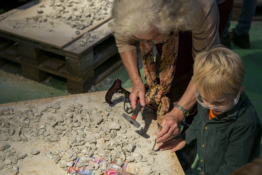 The activity is supervised by expert staff who explain how to work safely and effectively, but are also happy to answer questions about fossils and how they were formed.
